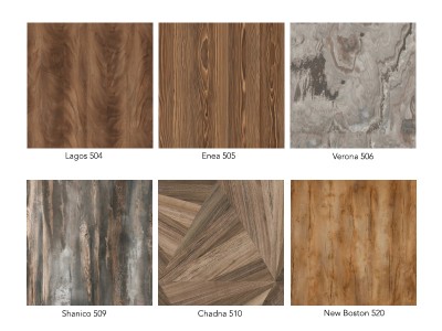 - Geformte laminierte Tischplatte, erhältlich in verschiedenen Dekoren, die Sie in der Bildersektion finden können.
