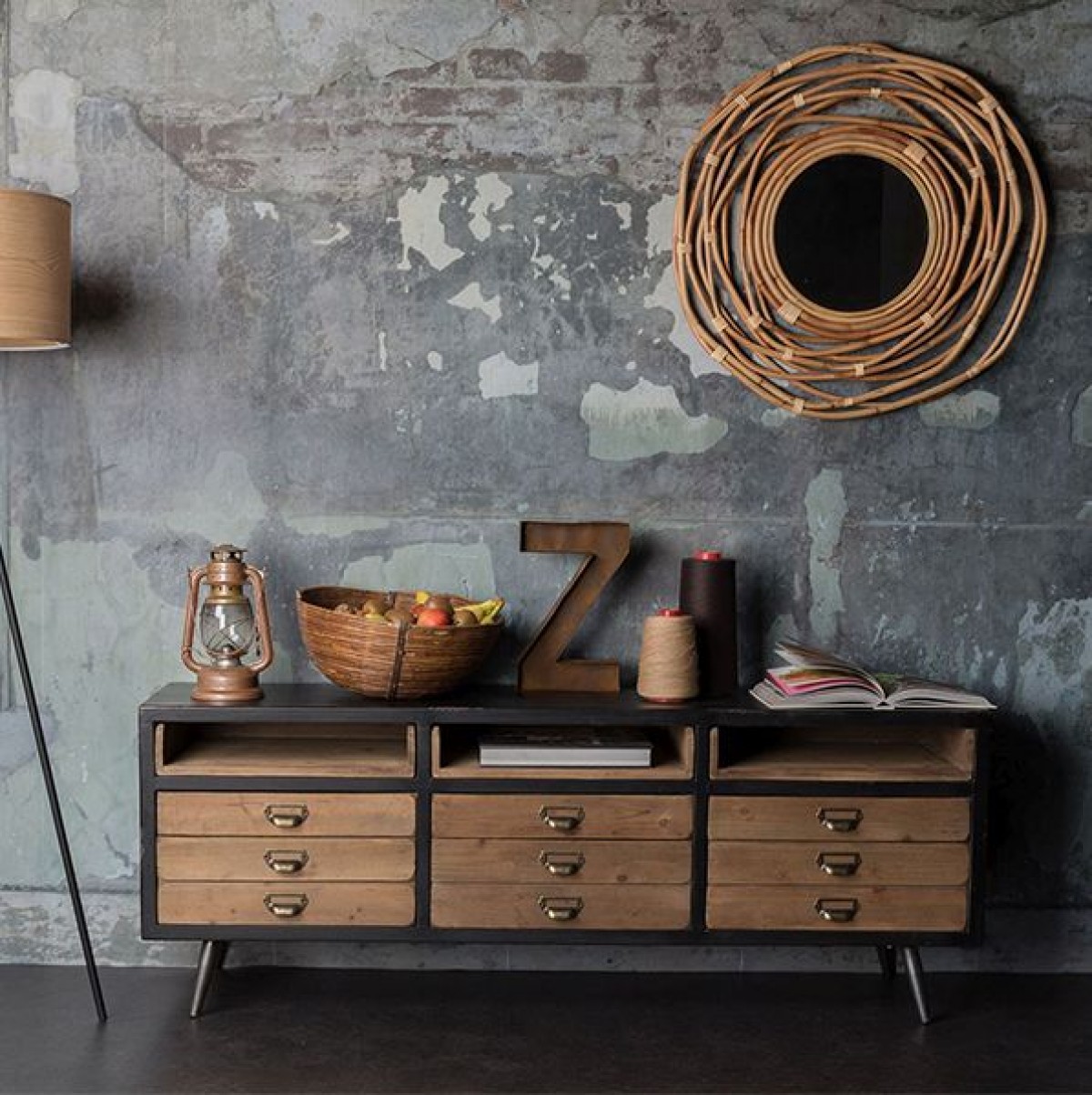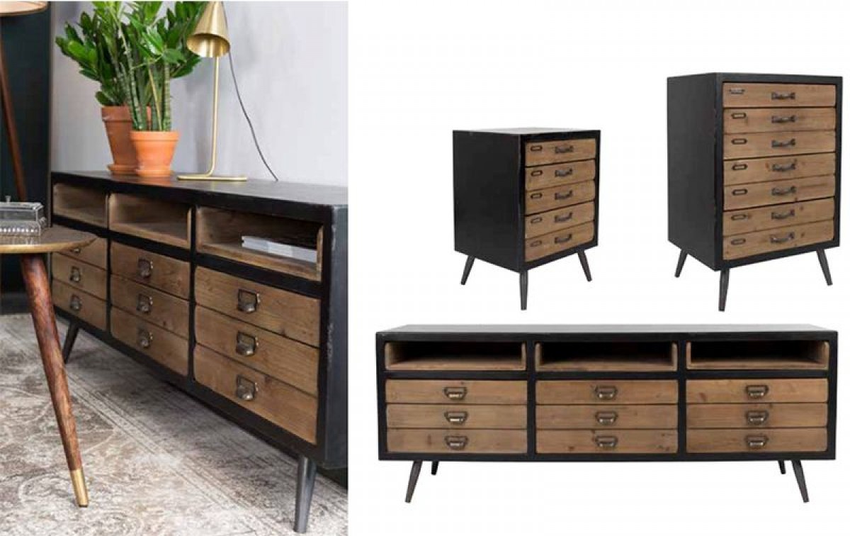 - Korpus aus MDF in Vintage-Eisen-Optik, n/c-lackiert