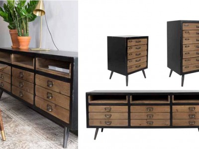 - Schubladenfronten aus massivem Kiefernholz in Vintage-Optik