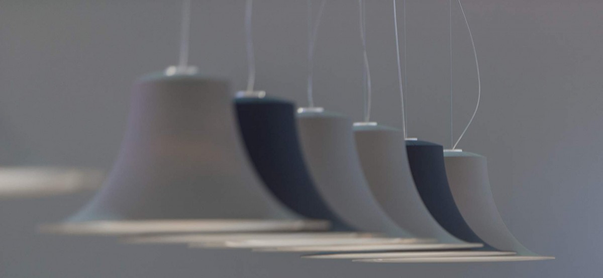 - Suspension lamp with polycarbonate diffuser soft-touch powder coating.